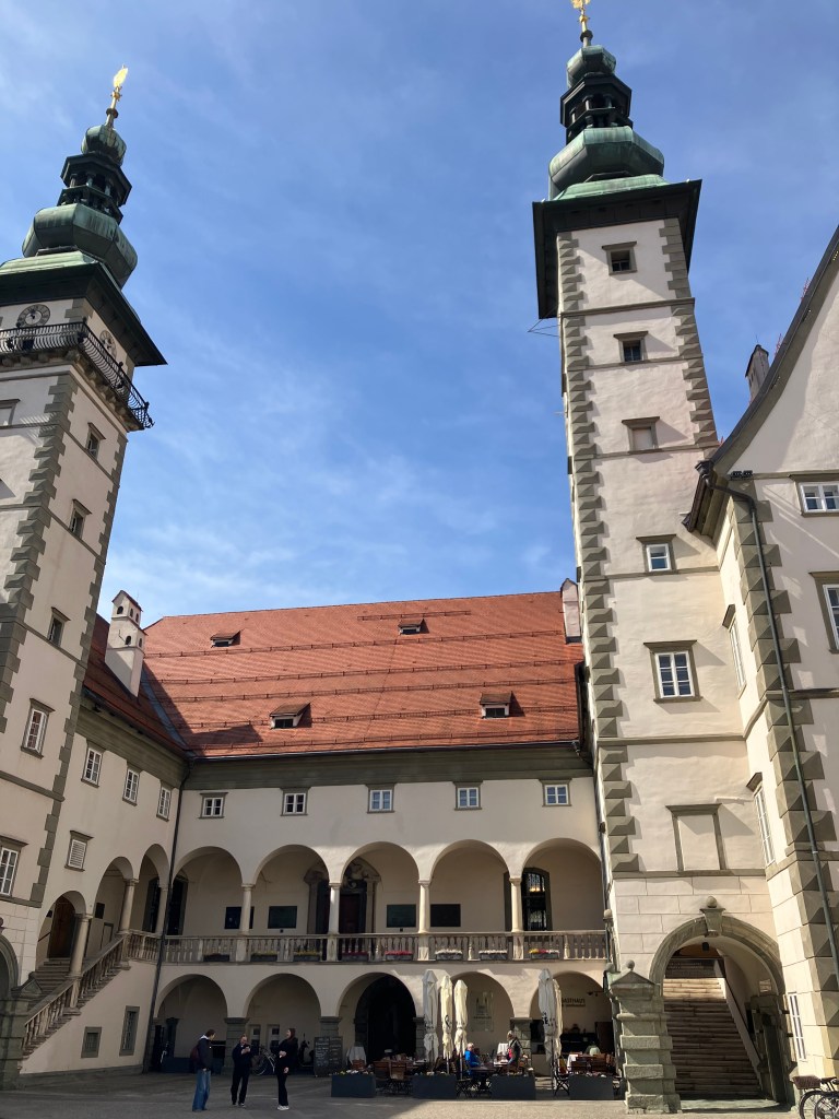 Weiter ging’s durch die Kramergasse zum Alten Platz und zur Dreifaltigkeitssäule. …den Zwischenstopp in der „Bar Italia“ (siehe Facebook) bei Prosecco und Antipastiplatte möchte ich nur am Rande erwähnen…